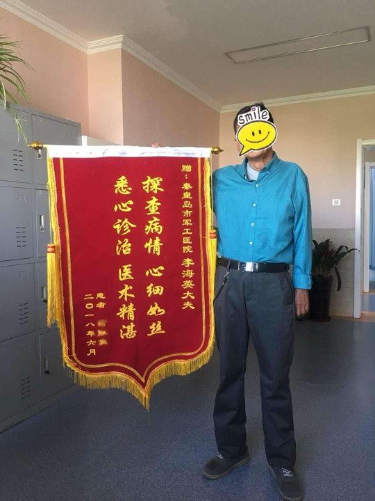 七年前,石阿姨不知道什么原因双腿出现一片片的疹子,瘙痒剧烈,曾在多家医院住院治疗,效果不明显,由于长期搔抓,皮肤反复破溃并不断增厚,痛苦不堪,用她的话说就是:“七年来没有睡过一天好觉,花了2、3万了,仍然越来越严重,严重时候用冰袋冰,还落下个腿疼的毛病。”为此,石阿姨曾一度失去了治疗的信心。就在上个月,石阿姨外孙得了寻常疣,多家医院建议冷冻治疗,她怕孩子遭罪,一直没有处理,一次偶然机会,听朋友说军工医院皮肤科不错,于是她带着外孙来到军工医院皮肤科,恰好李大夫值班,根据孩子情况,综合各种利弊,建议采用中药外洗的办法,这样用了一周,明显好转,石阿姨很高兴,也找李大夫看一看他的顽疾,李大夫详细问了病史,仔细查体,发现双下肢由于长期搔抓,皮肤已经增厚,有较多坚实的结节,散在很多血痂,一看就是病程很久了。李大夫给开了一些口服药及外用药封包,并详细交代了注意事项,说:“阿姨您不要着急,这么多年的病不会很快好,咱先用药试试。”让石阿姨没想到的是,刚用上一周药就不那么痒了,皮疹也没那么硬了,就这样复诊几次,坚持了一个月,皮疹基本消退,石阿姨和老伴开心的送来了锦旗,说:锦旗上能放的字太少,不足以表达我感激的心情啊!