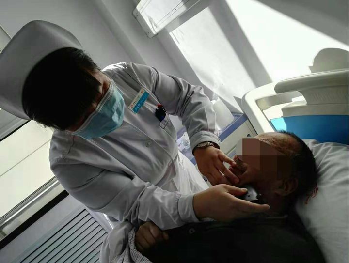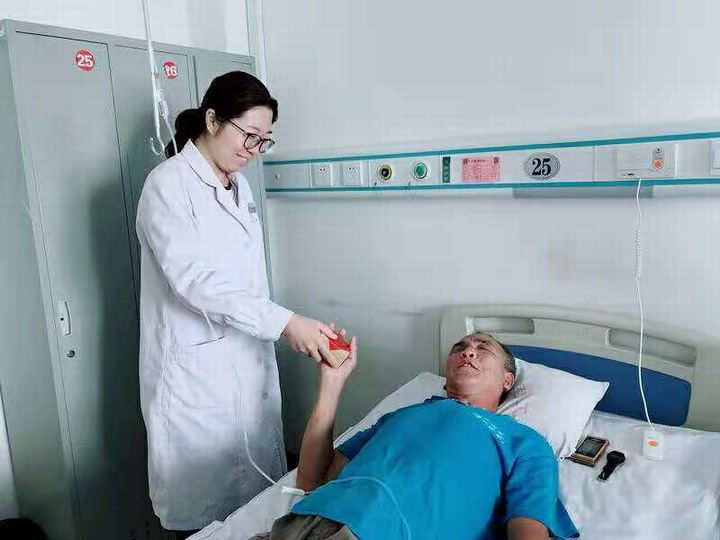 图为我科医务人员为孤寡患者送去中秋节月饼。