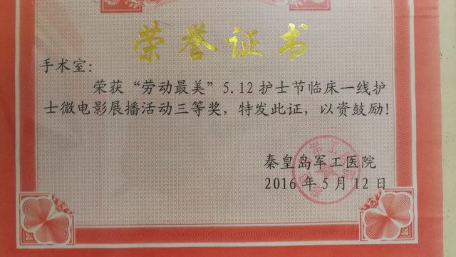 2016年最美荣获5.12护士节微电影展播活动三等奖
