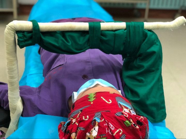 为了改善股骨骨折髓内钉内固定术无合适的约束带约束手术侧上肢,自己设计制作约束带。2017年制作完成投入使用。
