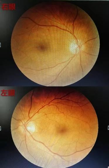 2017年11月的一天,47岁的于女士来到秦皇岛军工医院眼科门诊,接待她的是朱大夫。于女士说:“我是一名会计,平时工作用眼较多,有过视力下降的情况,但重新配副眼镜就好了,最近又出现视力下降,眼镜店的人却说给我配眼镜也提高不了视力了,所以我才来医院看看怎么回事。”听了于女士的描述,朱大夫对其进行了详细检查。患者裸眼视力右眼0.2,左眼0.3。矫正后右眼0.8,左眼1.0。双眼前节未见异常。散瞳后行眼底照相,见右眼视网膜有数颗微血管瘤及点状出血。如图: