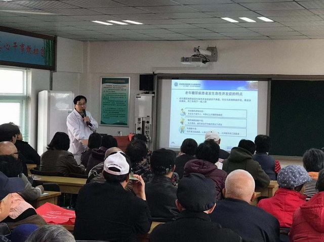 上午9时,联谊会正式开始,医院大会议室座无虚席,70多名糖尿病病友和综合内科医护人员齐聚一堂。综合内科主任张凤强首先为大家做题目为“老年糖尿病”的专题讲座,系统的介绍了老年糖尿病的特点及治疗的注意事项;然后针对糖友们对糖尿病认识上的十大常见误区进行了解析,并与大家进行充分的互动,参会者争相踊跃的抢答,把联谊会的气氛推向了高潮。