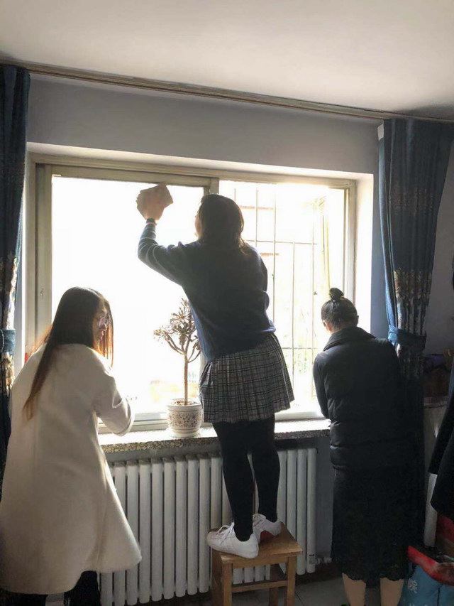 同时志愿者们携带抹布、笤帚、墩布、在服务对象家中进行室内保洁、擦玻璃、整理房间志愿服务活动。