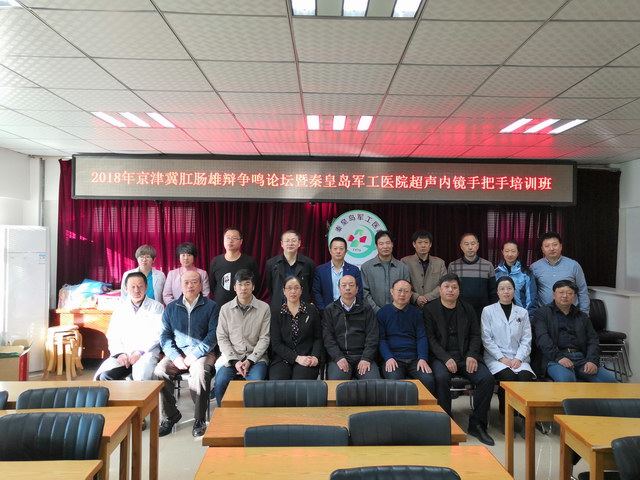 2018年11月10日上午,2018年京津冀肛肠雄辩争鸣论坛暨超声内镜手把手培训班在军工医院6号楼2楼会议室隆重召开。秦皇岛市中西医结合委员会秘书、军工医院副院长吴晓玉、秦皇岛市中西医结合学会大肠肛门病专业委员会主任委员吴剑冬、秦皇岛中西结合学会大肠肛门病委员会副主任委员、秘书长孟凡涛及秦皇岛市肛肠、消化内镜医学同仁参加。会议邀请了国内知名专家教授曹付亮、谢旭、秦皇岛市第一医院肛肠科主任、秦皇岛市港口医院消化内科主任、我院肛肠科、内窥镜诊疗科主任及影像科医师担任授课讲师。会议由吴剑冬、孟凡涛主持。