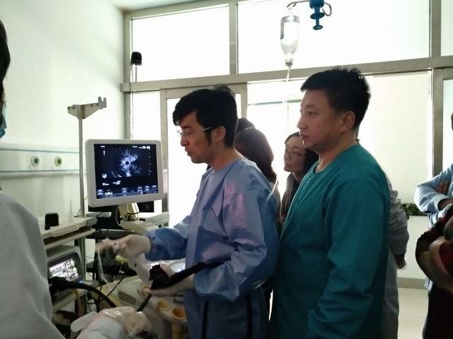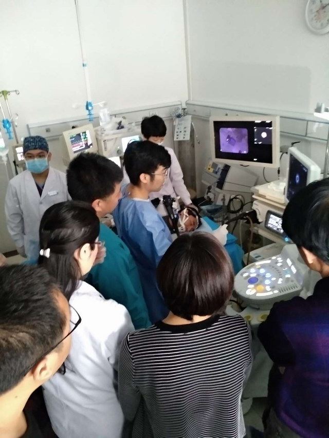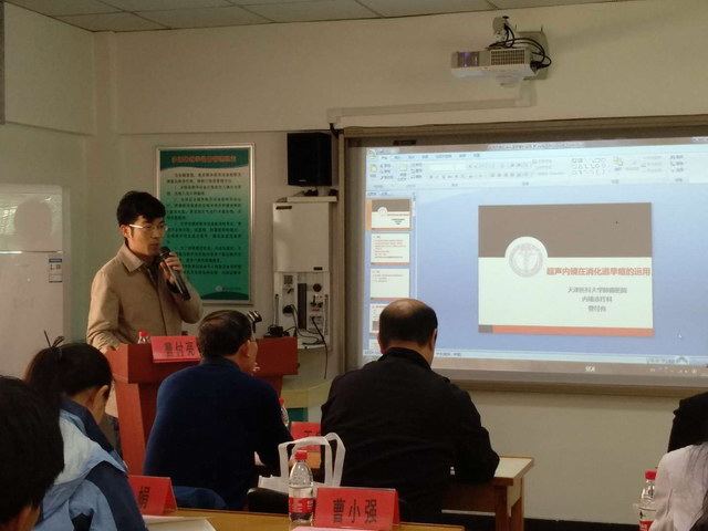 军工医院副院长吴晓玉向大会致辞。6位授课讲师围绕会议主题“肛肠疾病诊疗新技术、新方法及超声内镜对消化道疾病诊断理念”进行讲解,分别就肛肠疾病规范化诊疗及超声内镜在消化道疾病诊疗中的作用等问题进行交流和探讨。并在秦皇岛军工医院内窥镜诊疗科由曹付亮教授及孟凡涛主任进行超声内镜手把手教学,教学过程中,大家学习热情高涨,积极讨论,曹教授耐心解答,此次手把手教学受到消化内镜同仁一致好评。