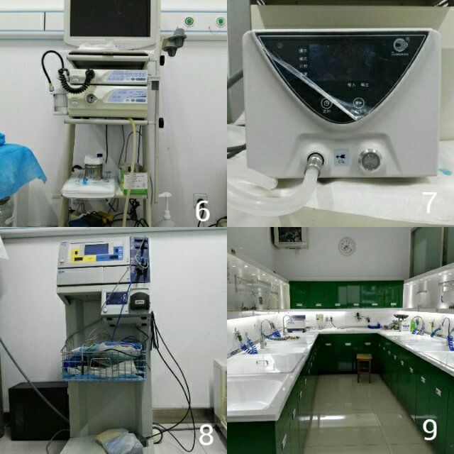 图6:胃镜主机,图7:二氧化碳气泵,可以减轻做肠镜时的腹胀,图8:ERBE高频电凝电切设备,图9:胃肠镜消毒设备。