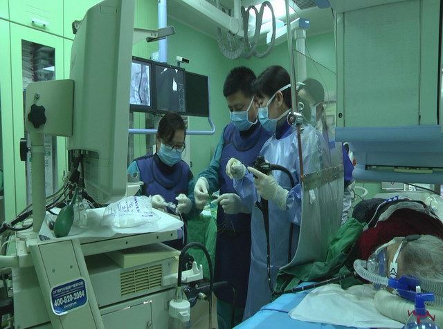 医生详细询问病史。6年前张奶奶因反复胆总管结石,做过ERCP手术,如今患有严重的冠心病和糖尿病。内窥镜诊疗科孟主任给予MRCP检查,结果显示胆总管结石、胆囊结石。孟主任考虑张奶奶高龄、基础疾病多,发病急,有反复发作病史,病因复杂,立即联系国内知名专家李文教授远程会诊,经家属同意,择期行ERCP、ENBD介入手术治疗。