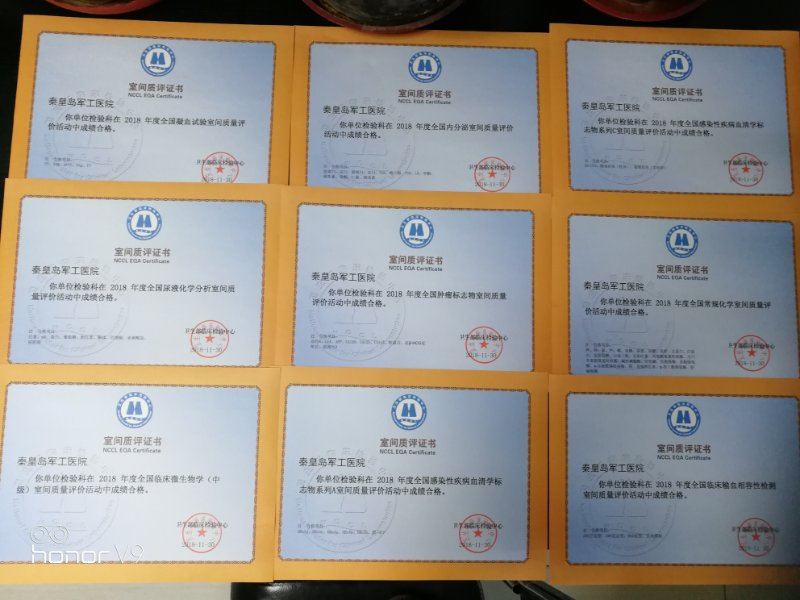 2018年度卫生部临检中心室间质评结果于本月初回报,参评项目全部以优秀的成绩通过。