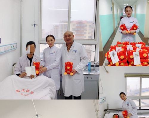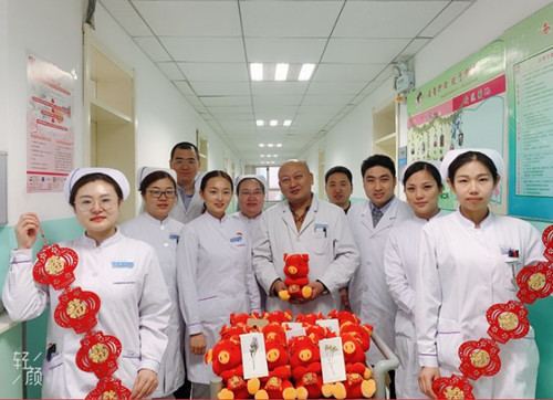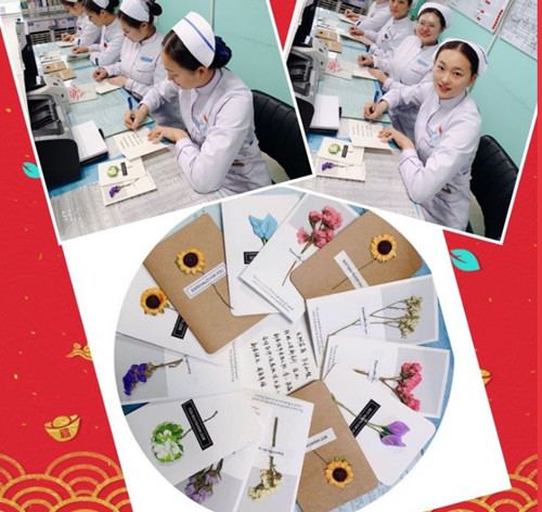 “还有两天就是大年三十了,我们提前给大家拜年了!祝你们早日康复,猪年大吉!”说话间,主任、护士长及医护代表将亲手书写的新年贺卡及猪年吉祥物—发财猪,送到了患者床边。在拿到礼物的那一刻,患者们病痛折磨而愁苦的脸上有了笑意,激动地说道:“你们想的太周到了,有了这个才叫过年呢,我太开心了”。
