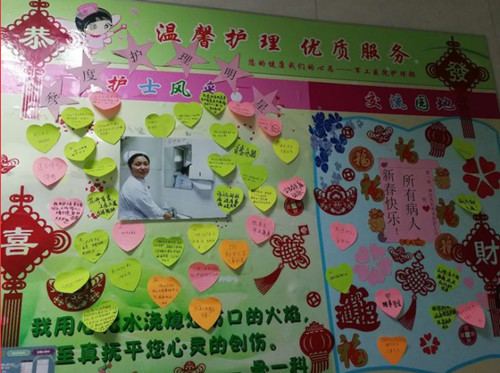 新春佳节来临,骨一科大病区仍然有许多的患者因为病情较重不能回家,为了帮助患者减少不能与家人团聚的遗憾,骨一科全体医护人员一起为病区挂上了大红灯笼,贴上了喜庆的福字,节日的春联,同时和病区的患者和家属一起纷纷写下节日寄语,小小的爱心传递着对亲人的祝福和对未来幸福的期待!