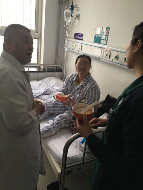 病人因病不能回家,急诊科医护人员在食堂员工的帮助下煮好热腾腾的元宵送到病床前,并祝他们早日康复。病人连声致谢。