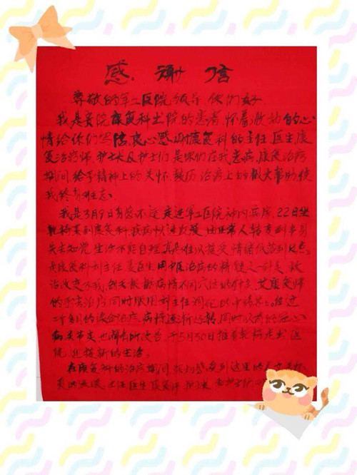 像这样的感谢信医生护士经常会收到,它表达了病人对医院的认可,对医护人员精湛医术、热情服务的鼓励。朴实的感谢信,代表了医患之间的真诚与和谐,也是医护人员不分昼夜,无私奉献的最好奖赏。