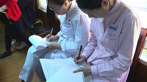 最后,与会人员在市直第六指导组副组长、纪委书记李爱琴的指导下,填写了《“不忘初心、牢记使命”主题教育测评表》,并进行了《秦皇岛军工医院主题教育应知应会测试》考试。
