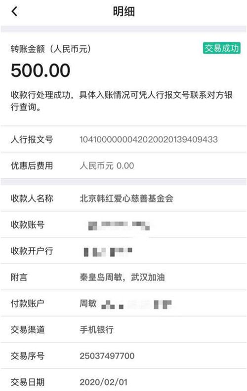 医生周敏通过基金会向武汉捐款。