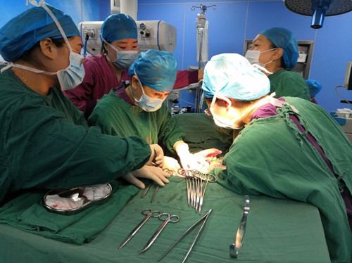 抢救同时将患者迅速送到手术室,手术室里展开一场与死神赛跑的殊死搏斗。在妇产科专家团队、麻醉科手术团队为患者实施剖宫产手术的同时,妇产科李英医生与患者家属沟通、联系血源、下达医嘱,史志萍主任邀请上级医院孕产妇抢救专家组、新生儿抢救专家组来院支援。