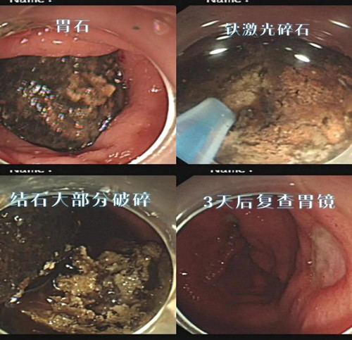 钬激光碎石术治疗胃石症有其独特的优点: (1)安全有效。(2)钬激光可以迅速击碎结石。