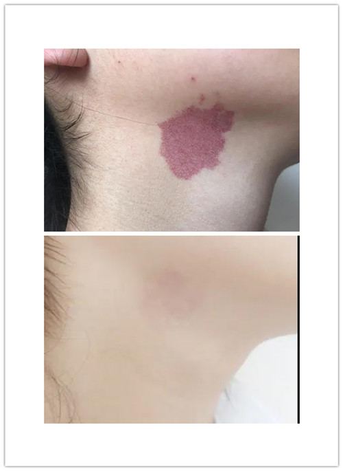 马主任根据赵女士疾病特殊情况,选择美国脉冲染料激光为她进行了治疗。美国脉冲染料激光治疗血管性皮肤疾病治疗原理:基于选择性光热作用原理。其波长可被氧合血红蛋白较好地吸收,且可穿透至真皮层。激光能量为氧合血红蛋白吸收后,通过热效应使血红蛋白及血管壁凝固,从而封闭血管,达到一个良好的治疗效果。