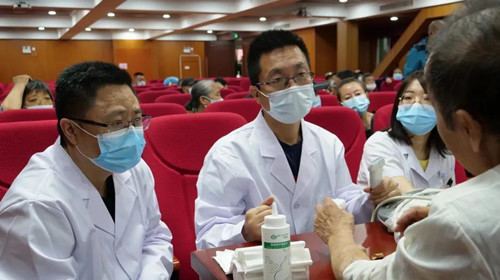 义诊中,一名患者动静脉内瘘狭窄,震颤减弱,肾内科主任张亚芹和尹丰教授针对患者静脉内瘘情况详细制定治疗方案,在与患者进行沟通后,定于5月25日为患者实施球囊扩张手术。