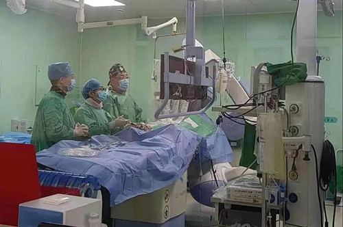 海港区72岁李姓患者,因持续胸痛27小时加重伴呼吸困难1小时来医院就诊,接诊医生为她急查心电图,结果显示AVR导联ST段弓背抬高,考虑为急性左主干病变。急性左主干病变发病凶险,在冠脉手术中属凶险手术,难度大、考验医生技术极高。由于患者发病时间大于12小时,并有持续性胸痛及呼吸困难症状,心电图ST段持续抬高,死神的脚步一步步向患者逼近。面对错过手术最佳时间窗口期,重症医学科主任王秋艳迅速与家属沟通,权衡此时的利与弊,决定急诊为患者实施冠脉造影介入治疗,并得到患者家属的信任及支持。