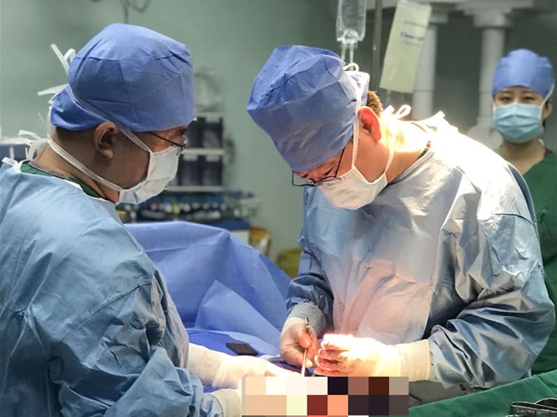 王裕中主任团队通过查体了解到,患儿包皮成鸟嘴形,阴茎体埋藏于皮肤以下,腹侧包皮较短,按压皮肤后,阴茎可露出,确诊为隐匿性阴茎。这种患者酷似包皮过长,有些没有经验的医生可能会给患者实施包皮环切术,但效果欠佳。在了解到隐匿性阴茎的同时,鉴于患儿腹侧包皮相对过短,王裕中主任团队为他制定了个体化的治疗方案,延长腹侧包皮,延长固定阴茎体。最后在麻醉科手术室的配合下顺利完成了无痛改良术式隐匿性阴茎矫形术,手术30分钟,无明显出血、痛苦小。