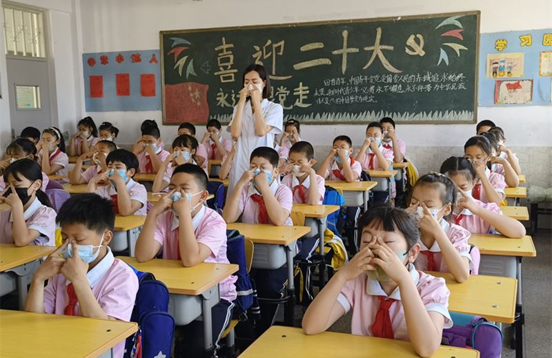 授课结束后,朱医生为学生进行视力检查,并带领学生们做眼保健操,更好的保护眼睛。 通过本次活动,学生们了解了护眼知识,增强了爱眼意识,认识到眼保健操以及养成正确读写姿势的重要性。