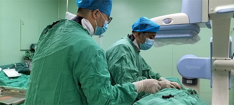 张杨副主任考虑术中患者因下肢疼痛无法平卧,在麻醉科手术室的配合下,给予静脉麻醉,进行下肢动脉开通,因双侧股动脉穿刺点及双侧髂动脉均有狭窄,不适合股动脉穿刺,选择分两次手术开通下肢动脉。