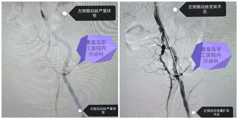 秦皇岛军工医院糖尿病足专病门诊具有从预防-诊断-治疗全面系统的对糖尿病神经病变、糖尿病下肢血管病变、糖尿病足等疾病诊治体系,应用感觉阈值测量、血管超声、下肢动脉造影等手段对上述疾病系统检查,应用下肢动脉介入治疗(下肢动脉球囊扩张术、下肢动脉支架植入术、下肢动脉血栓旋切术等)、蚕食清创术、VSD、VAC、红外线照射、无创缝合术、高压氧、中药熏洗及外敷等措施预防与治疗糖尿病上述并发症,经过系统治疗,患者的麻、凉、痛、蚁行感、静息痛、间歇性跛行、溃烂创面症状明显改善,糖尿病足保肢率高。