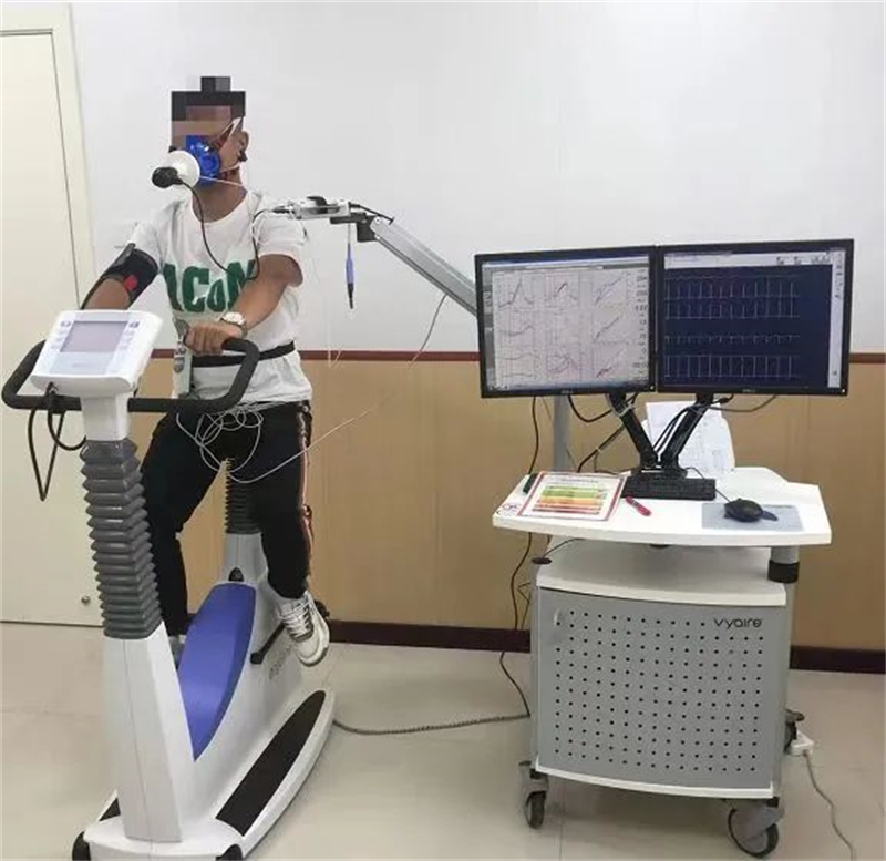 一般采用功率车方式进行测试。功率车相对于平板安全系数高,适用人群广泛,运动损伤少。检查前医生会根据患者的身高、体重、年龄等参数计算出患者能承受的蹬车功率,整个试验过程是先吹静态肺功能,然后蹬功率车,功率车实施方案是:静息- 热身- 极量运动- 恢复,一些特殊患者医生会采取限制性运动。在这个试验过程中,试验设备会得到摄氧量、氧脉搏、无氧阈等重要的客观参数,绘制成单独反应肺、心以及双向反应心肺等9个图谱,通过专业医生分析,一目了然的了解患者身体的“发动机”状况。