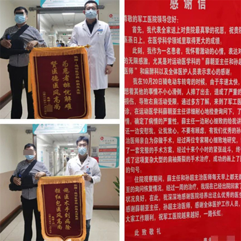 患者及家属说:“住院期间,军工医院医护给予我精心的治疗和护理,在此我由衷的向全体医护人员表示衷心的感谢。”朴实的言语,深情的感谢,代表的不仅仅是一份感激,还承载了患者对运动医学科医疗工作的信任和理解。运动医学科全体医务人员非常感谢患者及家属对他们工作的认可,这份认可更是对医生护士工作的鞭策和激励。在今后的工作中,全体医护将继续坚守初心使命,发扬“以患者为中心”的服务理念,不断学习,提升医术,为地区百姓健康保驾护航。 医疗科普: