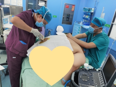 经过再三斟酌考虑,最终选择了椎管内麻醉的方案。患者进入术间后为患者接监护、吸氧、开放外周静脉。在科主任、副主任的指导下,为患者采取坐位椎管内麻醉,摆放好麻醉穿刺体位后,在超声辅助定位下确定穿刺点,再按穿刺点进行局麻、穿刺、给药,整个穿刺过程顺利,麻醉效果较好。最终,在麻醉医生与手术医生的共同努力下,手术顺利完成。