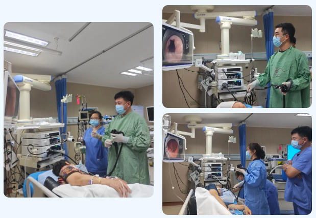 随后,进行了精彩的授课。张浩主任详细讲解了《ERCP相关的胆胰疾病诊治》;王琨教授分享了《食管动力障碍相关疾病的内镜诊治》;李莉主任通过《胆囊病变一例》的案例分析,呈现了消化系统疾病的诊断与治疗思路;孟凡涛主任讲解了《食管早癌的内镜诊疗》;副主任医师曹信宇和李宏岩分别就《病例汇报:一例食管ESD术后狭窄的内镜下治疗》和《高分辨率食管测压的操作及规范诊疗》进行了专题报告与病例分享。培训结束后,专家们进行了相关手术演示。