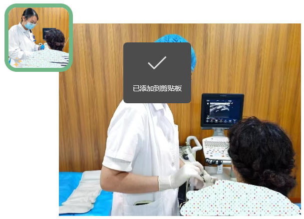 在北医三院派驻专家祁文静博士的指导与亲自操作下,宋佳副主任医师协同配合,团队运用超声引导技术精准定位病变部位,成功完成钙化灶抽吸及局部封闭治疗。治疗后,刘阿姨左肩疼痛当即明显减轻,次日症状进一步改善。经过后续超声定位冲击波治疗及系统康复理疗,刘阿姨恢复良好康复出院。